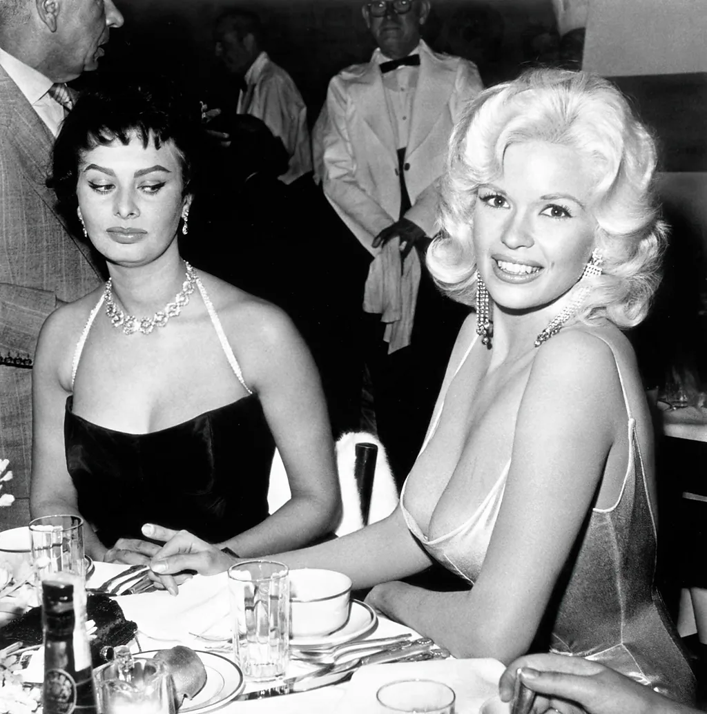 Sophia Loren and Jayne Mansfield at Romanoff’s in 1957